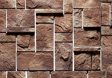 Массивный прямоугольный декоративный камень разных размеров с грубо обработанной поверхностью. "Средневековый замок" придаст зданию строгий, монументальный вид. Оригинальный вариант для отделки фасада.